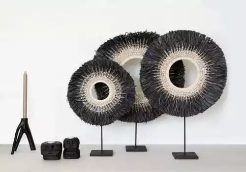 Maisons Du Monde Statuettes Et Figurines Statuette Poissons En Métal Noir Et Raphia Beige H26