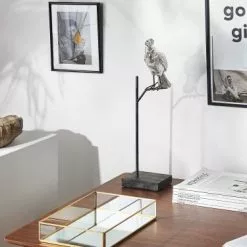 Beliani Statuettes Et Figurines Perroquet Décoratif Noir Et Argenté