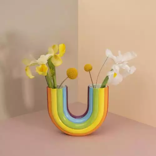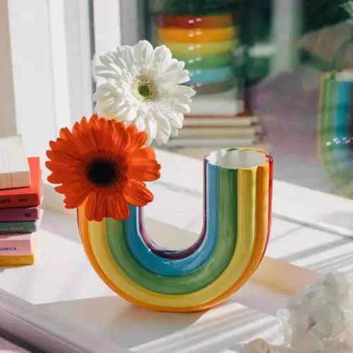 Ce double vase vous apportera de la gaieté avec ses couleur arc-en-ciel vive ! Dimensions : 7 x 16.5 x 20 cm Matière : Céramique