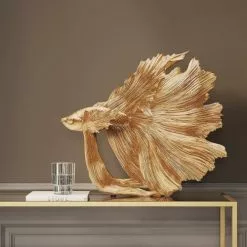 Kare Design Statuettes Et Figurines Statuette Poisson Combattant En Polyrésine Dorée 37×34