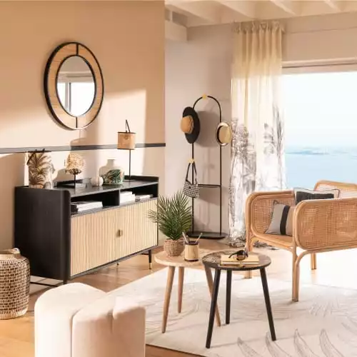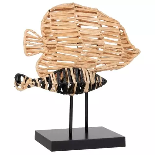 Maisons Du Monde Statuettes Et Figurines Statuette Poissons En Métal Noir Et Raphia Beige H26