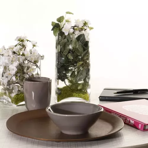 Entretien : laver à la main à l’eau savonneuse tiède. Eviter les chocs et les changements de température brusques pour prévenir de la casse. Ne pas mettre en plein soleil ou dehors lorsqu’il gèle. Lavable au lave-vaisselle à basse température.